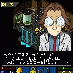 昨夜遅くの作業で、新しく描き直していたアバター素体と防護服素体が揃った。今までは様々な服装や防護服を表現するために何枚もの画像を使用していたのだが、携帯に一度に読み込める画像枚数には限りがあるので、キャラの姿を表示するだけで結構な負担になっていた。 そこで、防護服を着用していないアバター用と、防護服を着用している時の画像をそれぞれ1枚で表現できるように改造した。たった16色で全てのアバターや防護服の種類とカラーバリエーションを表現するのは無理だと思われていたんだけど、思い切ってハイライトとシャドウの明暗表現を省き、16色を体の各関節ごとに配分してパレット管理することで実現した。 これでどんなに多くのプレイヤーが画面に登場していても、胴体のために読み込む画像はアバター用と防護服用の二枚で済むことになる。今まで容量問題で実装できずにいた帽子やその他の装備品も、次回更新以降は実装されるかも知れない。 今日は公開中の携帯公式ページから、スクショを何枚かご紹介。 まだ闇工房の中身は実装されていないので、訪問しても門前払いの状態。クローズドに残って下さってる皆さんには、今しか支給されないアイテムなんかが各ショップで配布されてるかも知れないので要チェックです。 PR |